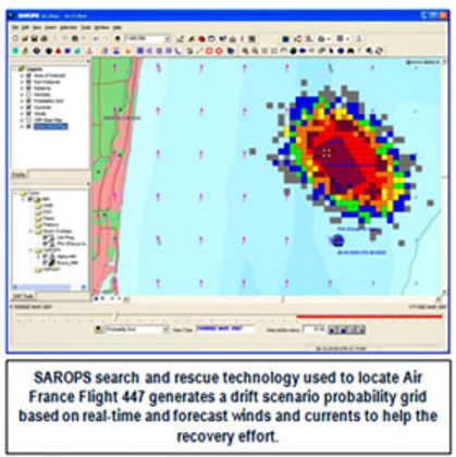 2009年,法国航空公司一架从巴西里约热内卢飞往巴黎的航班在大西洋上空失事。美国罗德岛南金斯顿(South Kingstown, RI)朴茨茅斯市(Portmouth, VA)的海岸警卫队搜救专家利用搜救软件系统(SAROPS)帮助法国当局预测海上失踪物的最佳搜寻区域。该搜救软件系统可融合最新的实时及预测性数据,为决策者提供快速有效的搜救预测。